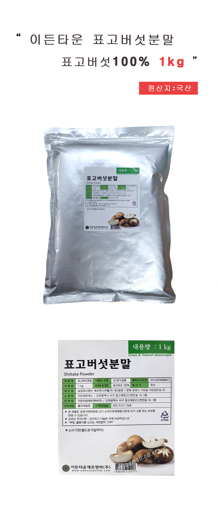 이든타운 표고버섯분말(국산) 1kg 표고버섯100%