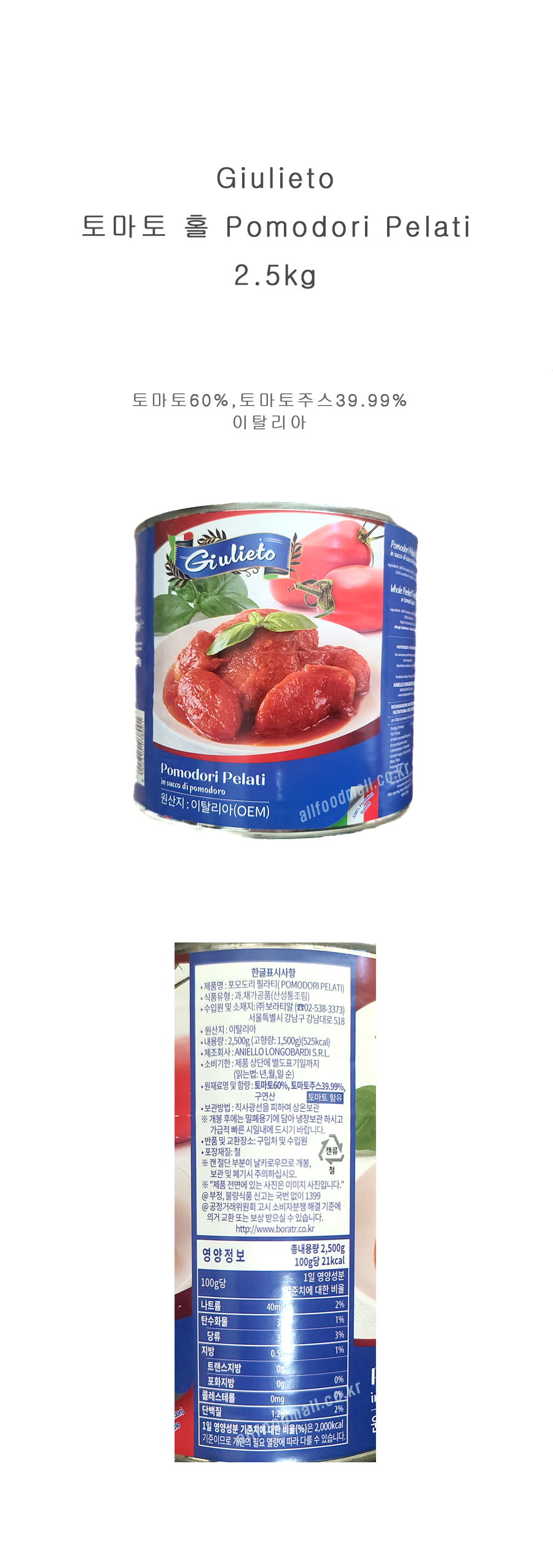 > 롱고발디 토마토홀 2.55kg줄리에토 파스타소스 이탈리아 피자소스