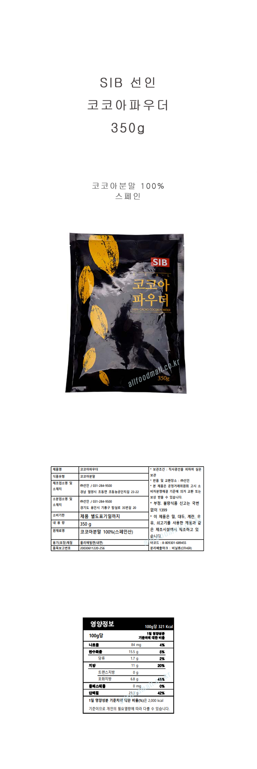 > 선인 코코아 파우더 350g 스페인 코코아100%